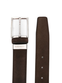 suede belt Highlights - Dark chocolate brown - Calf suede - Punched holes - Debossed internal logo - Logo-engraved silver-tone hardware - Pin-buckle fastening - Adjustable fit Made in Italy Composition Calf Suede 100%, Brass 100% SIZE & FIT Measurement Maximum Length 37.4 in(95 cm) Minimum Length 34.64 in(88 cm) WIDTH 1.18 in(3 cm)