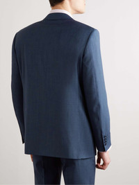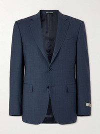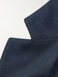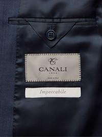 Canali has been renowned for its exceptional suiting since 1934 - the same traditional, Italian techniques are still employed today. This suit jacket is tailored from a Super 130s wool and cotton-blend with plenty of texture. Wear it with the matching trousers and a light-coloured shirt like pink, yellow or blue. Small to size. See Size & Fit notes. Size & Fit - Fits small to size. Take one size larger than normal - Regular cut blazer, tailored for a comfortable fit - Mid-weight, non-stretchy fabric - Model is shown wearing an IT 50 - Model measures: chest 38"/ 96cm, height 6'2"/ 188cm Details & Care - Navy Super 130s wool and cotton-blend - Notch lapels, buttoned cuffs, chest welt pocket, two front pockets, double vent - Two button fastening - 73% wool, 27% cotton; buttons: 100% horn (Buffalo); lining1: 100% polyester; lining2: 63% viscose, 37% polyester - Dry clean