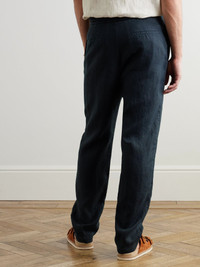 Tapered Linen Drawstring Trousers Navy