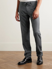 Tapered Wool-Flannel Drawstring Trousers Gray