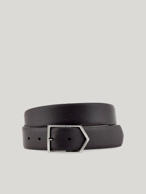 Smooth calfskin belt enhanced by a square shiny silver buckle that enhances its contemporary design. An essential accessory that combines elegance and functionality, ideal for the man who wants to complete his looks with a versatile and refined style. FABRICS AND CRAFTSMANSHIP Smooth calfskin belt Rectangular buckle with shiny silver finish Not adjustable Cowhide Made in Italy
