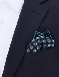 TEAL SILK DOUBLE PRINT POCKET SQUARE