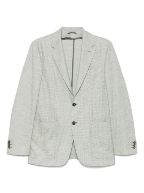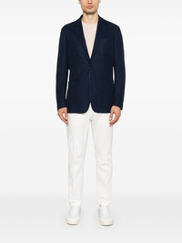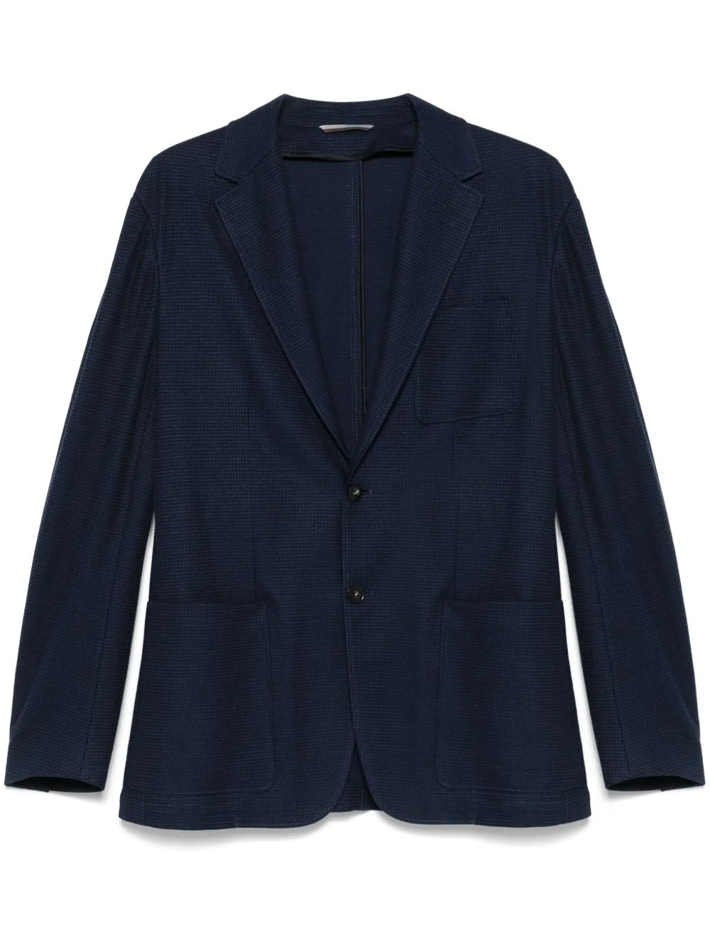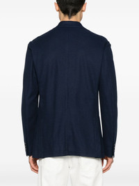 textured blazer Highlights - Navy blue - Front button fastening - Chest welt pocket - Two side patch pockets - English rear vents Made in Italy Composition Outer: Cotton 85%, Linen/Flax 15% Lining: Acetate 65%, Polyester 35% SIZE & FIT Model measurements Height 6 ft 1 in(1.86 m) Bust/Chest 37.4 in(95 cm) Hips 36.22 in(92 cm) Waist 29.52 in(75 cm) FittingInformation Designed for a slim fit, offering a comfortable fit that sits just away from the body The vented hem offers movement at the rear Made from a midweight non-stretch fabric, this piece offers minimal elasticity when worn