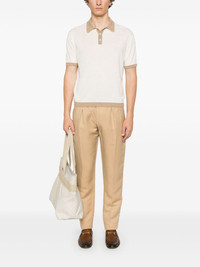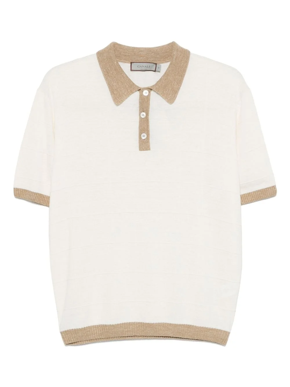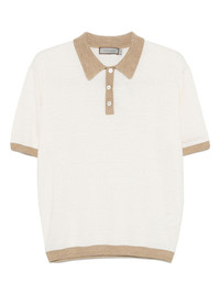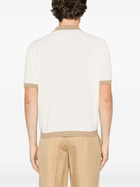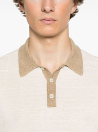 textured polo shirt Highlights - Almond beige - Front button placket - Polo collar - Short sleeves - Contrasting trim Made in Italy Composition Linen/Flax 70%, Silk 30% SIZE & FIT Model measurements Height 6 ft 2 in(1.87 m) Bust/Chest 38.97 in(99 cm) Hips 37.99 in(96.5 cm) Waist 29.52 in(75 cm) FittingInformation Designed for a regular fit, this polo shirt offers a comfortable loose fit throughout the body The ribbed hem offers a close, comfortable fit Made with a lightweight knit, this piece offers some stretch Washing instructions Hand Wash