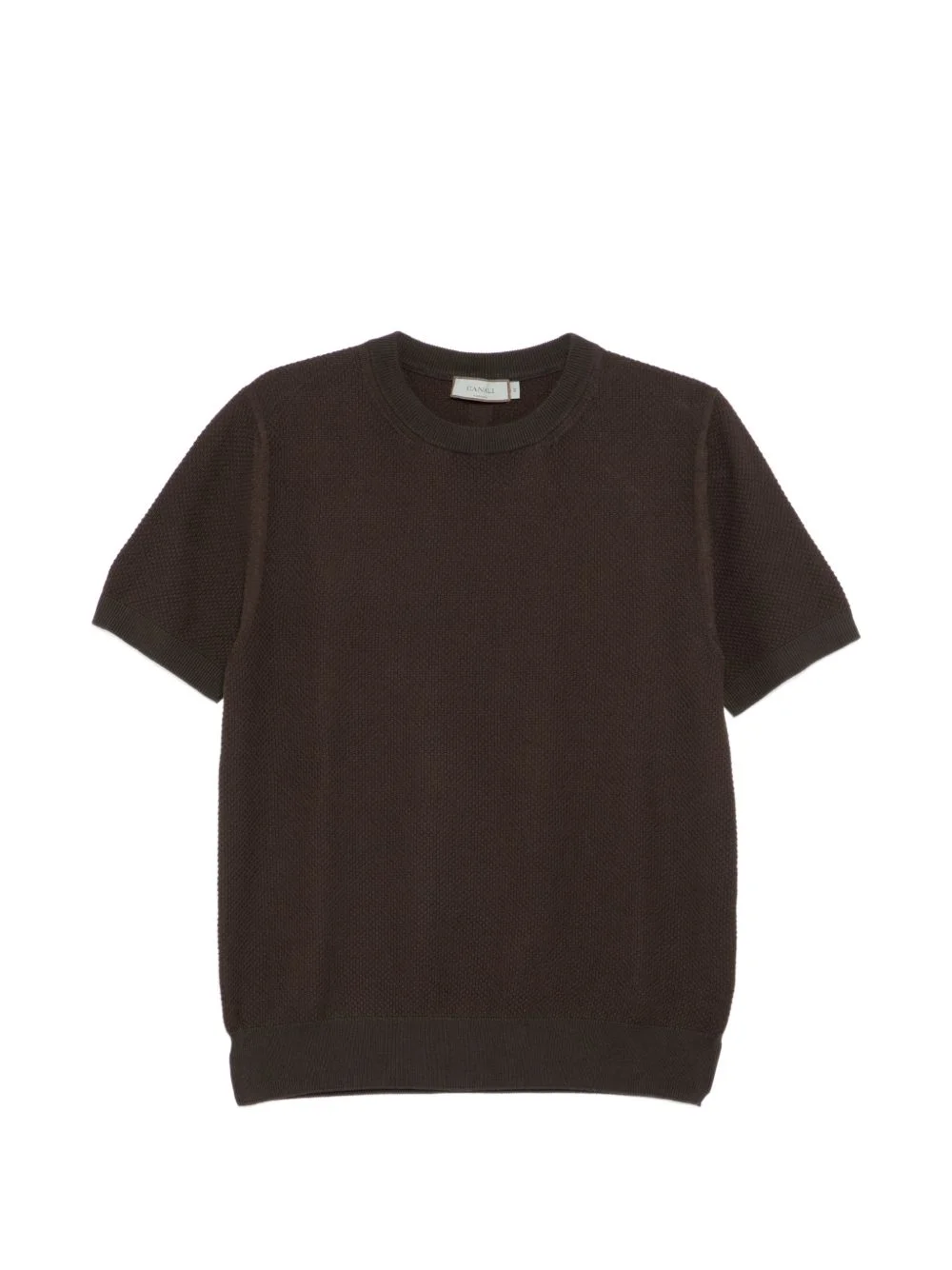 textured top Highlights - Dark brown - Round neck - Short-sleeve - Ribbed hem and cuffs Made in Italy Composition Cotton 100% Washing instructions Hand Wash