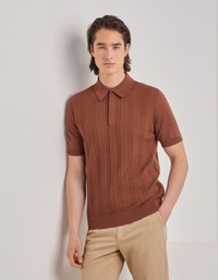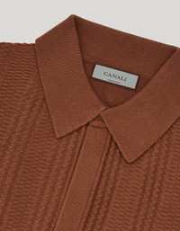 Short-sleeved polo shirt made with a soft cotton blend, enhanced by a refined vertical workmanship that gives the garment three-dimensionality and character. The classic collar with concealed placket and ribbed trims on the collar, hem and sleeve edges complete an essential and refined design. A shirt that combines comfort and sobriety for a contemporary and relaxed elegance. FABRICS AND CRAFTSMANSHIP - Short-sleeved buttoned concealed placket polo shirt - Ribbed collar, hem, and sleeve edges - Microstructure - 12 gauge - 50% Cotton 50% Modal - Closed hem - Made in Italy CARE Hand wash max 40° Do not bleach Normal steam or dry iron on low (110°) Gentle dry clean with perchlorethylene Dry flat FIT The model is wearing a size 50 The model measures: Height: 185 cm (72.8 in) Chest: 100 cm (39.4 in) Waist: 79 cm (31.1 in) Hips: 95 cm (37.4 in)