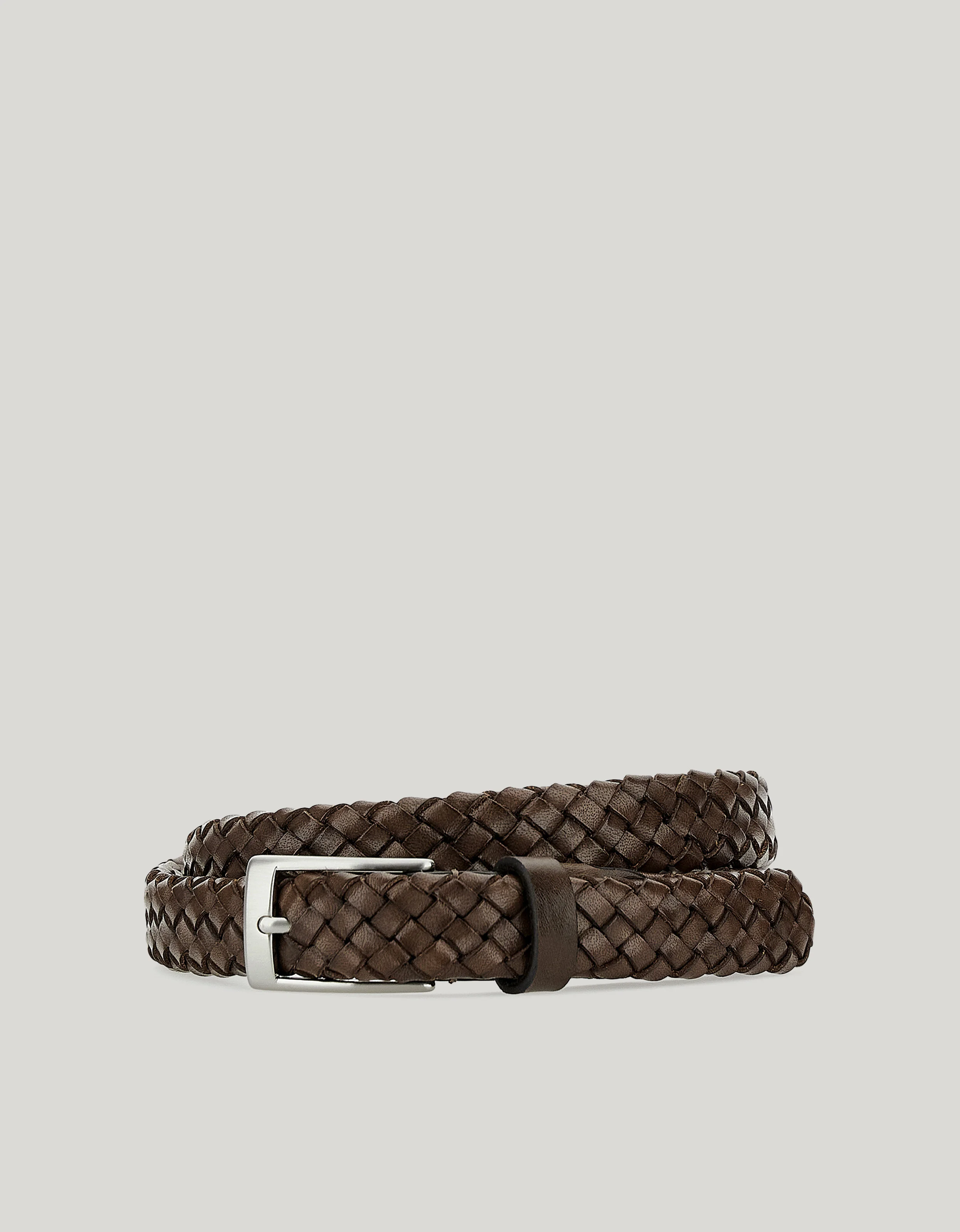 Hand-woven calfskin belt, an icon of design excellence, featuring a rectangular buckle with a satin silver finish and a tubular design. An expression of subtle luxury and attention to detail, a must-have to complete any outfit with refined elegance. FABRICS AND CRAFTSMANSHIP - Hand-woven tubular belt height 25 mm - Wool lining - Rectangular buckle H 3.5 cm with satin silver finish - Cannot be shortened - Non-reversible - 100% calfskin - Made in Italy
