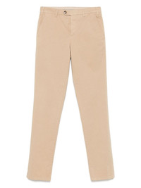 twill chinos Highlights - Sand beige - Concealed front button, hook and zip fastening - Two side slit pockets - Two rear button-fastening jetted pockets - Pressed crease Made in Italy Composition Lining: Cotton 100% Outer: Cotton 98%, Spandex/Elastane 2%