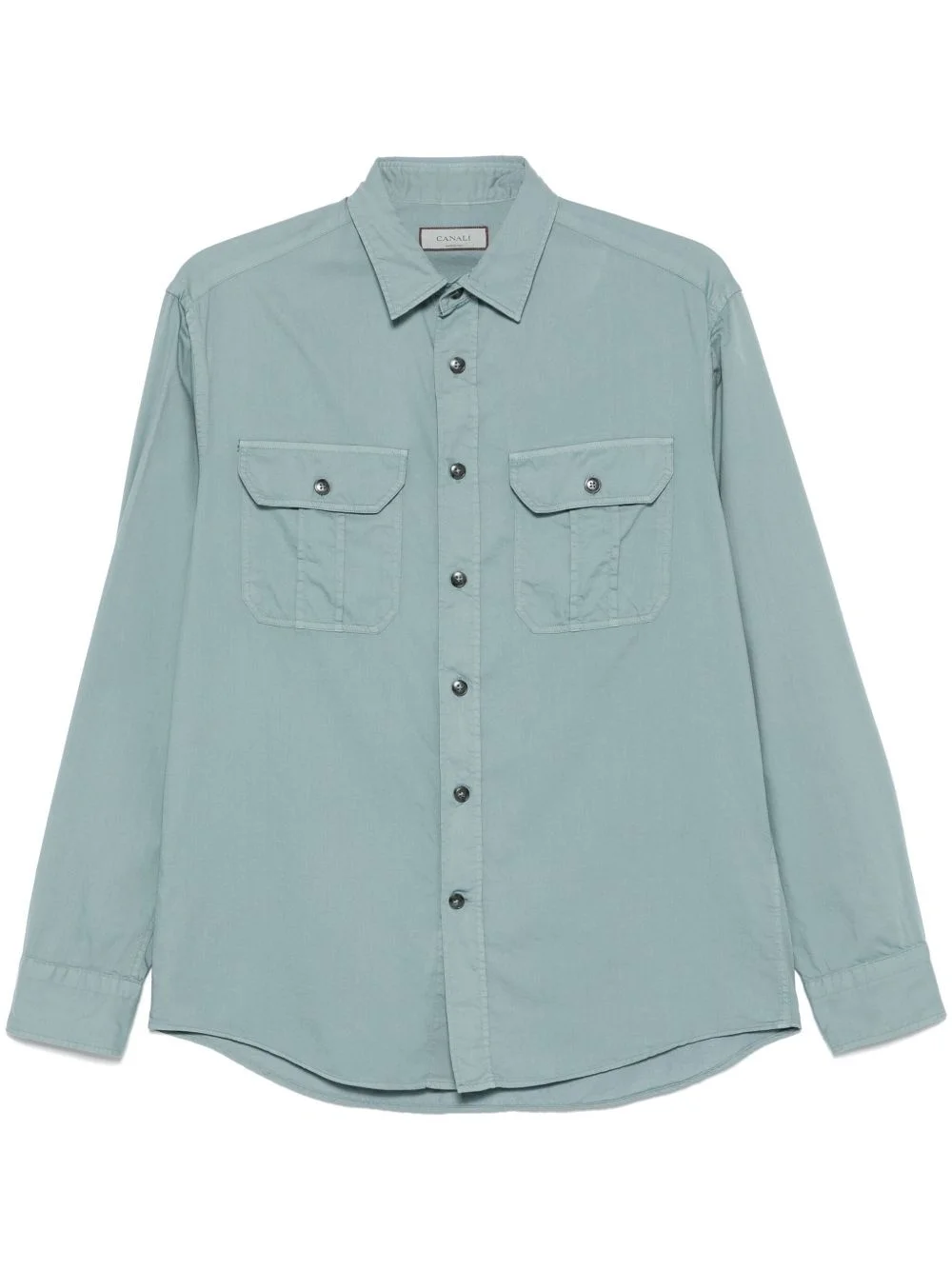twill shirt Highlights - Teal blue - Front button fastening - Two button-fastening chest pockets - Buttoned cuffs - Long sleeves Made in Italy Composition Cotton 59%, Lyocell 41%