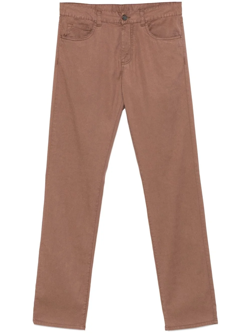 twill trousers Highlights - Chestnut brown - Front button and zip fastening - Belt loops - Classic five pockets - Logo patch to the rear Made in Italy Composition Outer: Lyocell 66%, Cotton 31%, Elastane 3% Lining: Cotton 100% Washing instructions Machine Wash