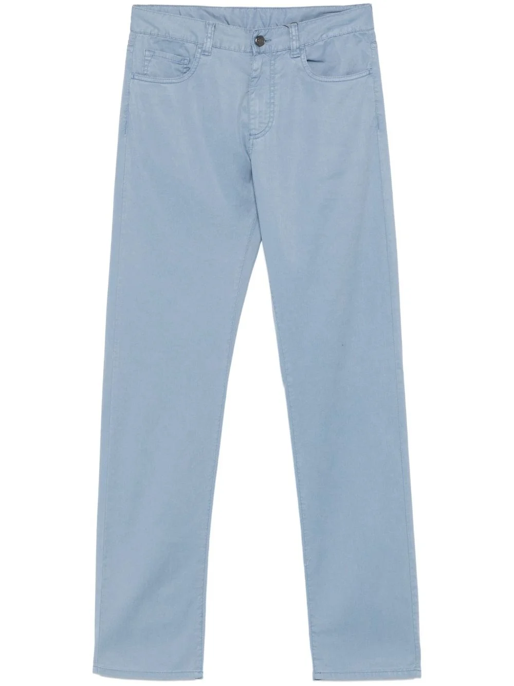 twill trousers Highlights - Alice blue - Front button and zip fastening - Belt loops - Classic five pockets - Logo patch to the rear Made in Italy Composition Outer: Lyocell 66%, Cotton 31%, Elastane 3% Lining: Cotton 100%