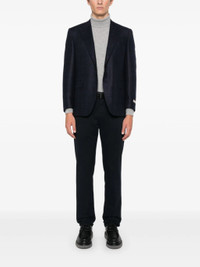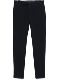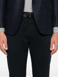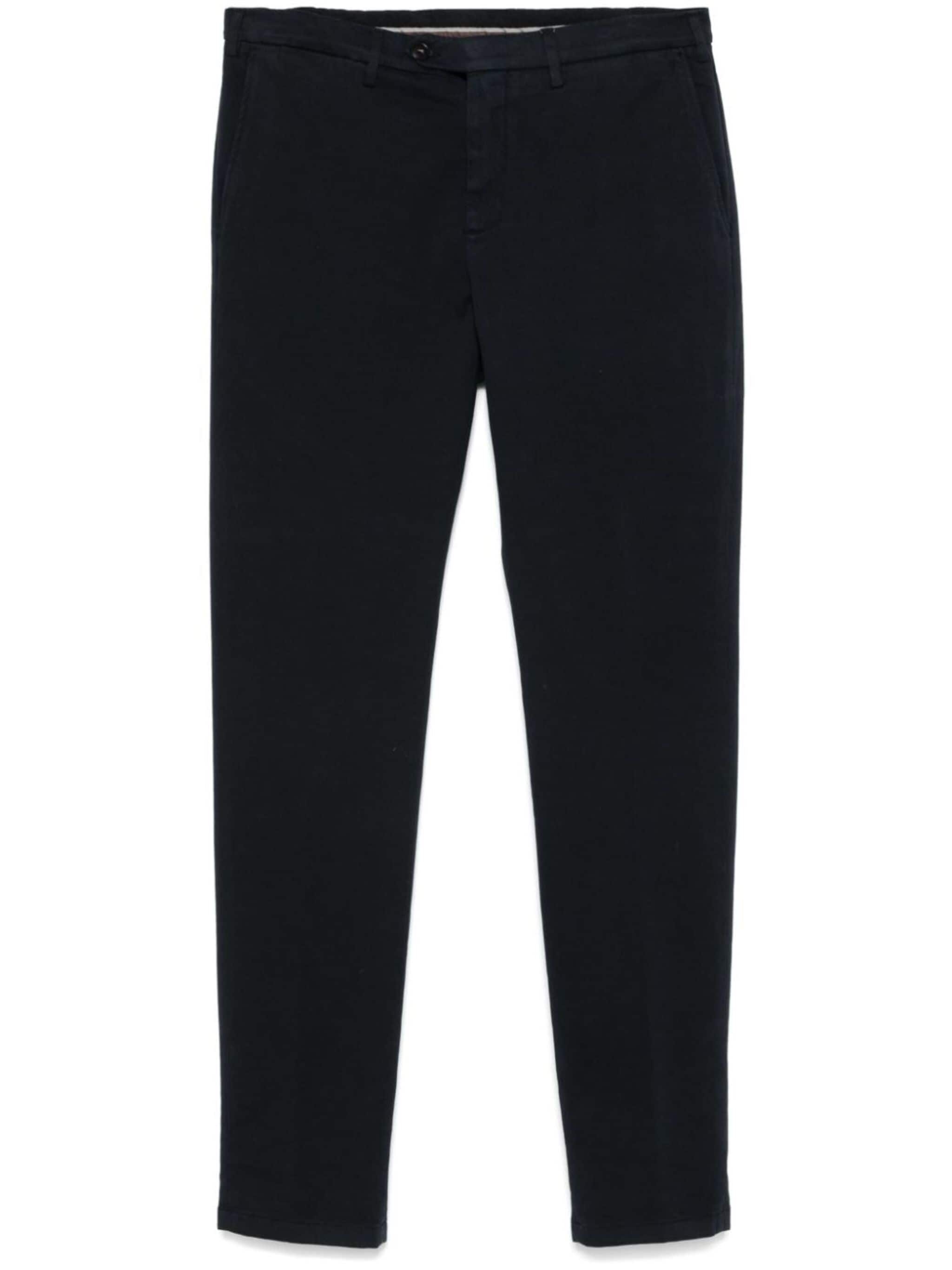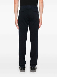 navy blue cotton blend stretch-design twill weave slim cut concealed zip-fly and button fastening belt loops two side slash pockets coin pocket two rear button-fastening jetted pockets full-length Size & Fit Model Measurements: Height: 1.86 m Bust/Chest: 97.0 cm Hips: 97.0 cm Waist: 74.0 cm Model wears size 50 Fabric and Care Designer Style ID: D93630PT00417 Designer Colour: 306 NAVY Composition: Outer: Cotton 98%, Elastane 2%; Lining: Cotton 100% Washing instructions: Machine Wash Made in Italy