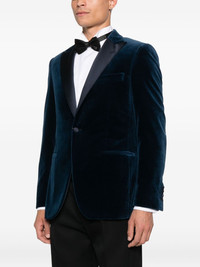 velvet blazer Highlights - Blue - Button fastening - English rear vents - Shoulder pads - Chest welt pocket - Jetted pockets to the front - Internal pockets Made in Italy Composition Outer: Cotton 100% Lining: Cupro 100% SIZE & FIT Model measurements Height 6 ft 1 in(1.85 m) Bust/Chest 35.82 in(91 cm) Hips 37.79 in(96 cm) Waist 29.13 in(74 cm) Washing instructions Dry Clean Only