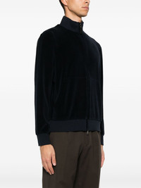 velvet sweatshirt Highlights - Navy blue - Jersey texture - Velvet finish - Front two-way zip fastening - Ribbed stand-up collar - Long sleeves - Two front pouch pockets - Patch detail - Ribbed cuffs and hem Made in Italy Composition Polyester 61%, Cotton 39% SIZE & FIT Model measurements Height 6 ft 2 in(1.87 m) Bust/Chest 36.22 in(92 cm) Hips 35.43 in(90 cm) Waist 29.13 in(74 cm) FittingInformation Designed for a regular fit, offering a comfortable loose fit throughout the body The ribbed hem offers a close, comfortable fit Made from a midweight non-stretch fabric, this piece offers minimal elasticity when worn