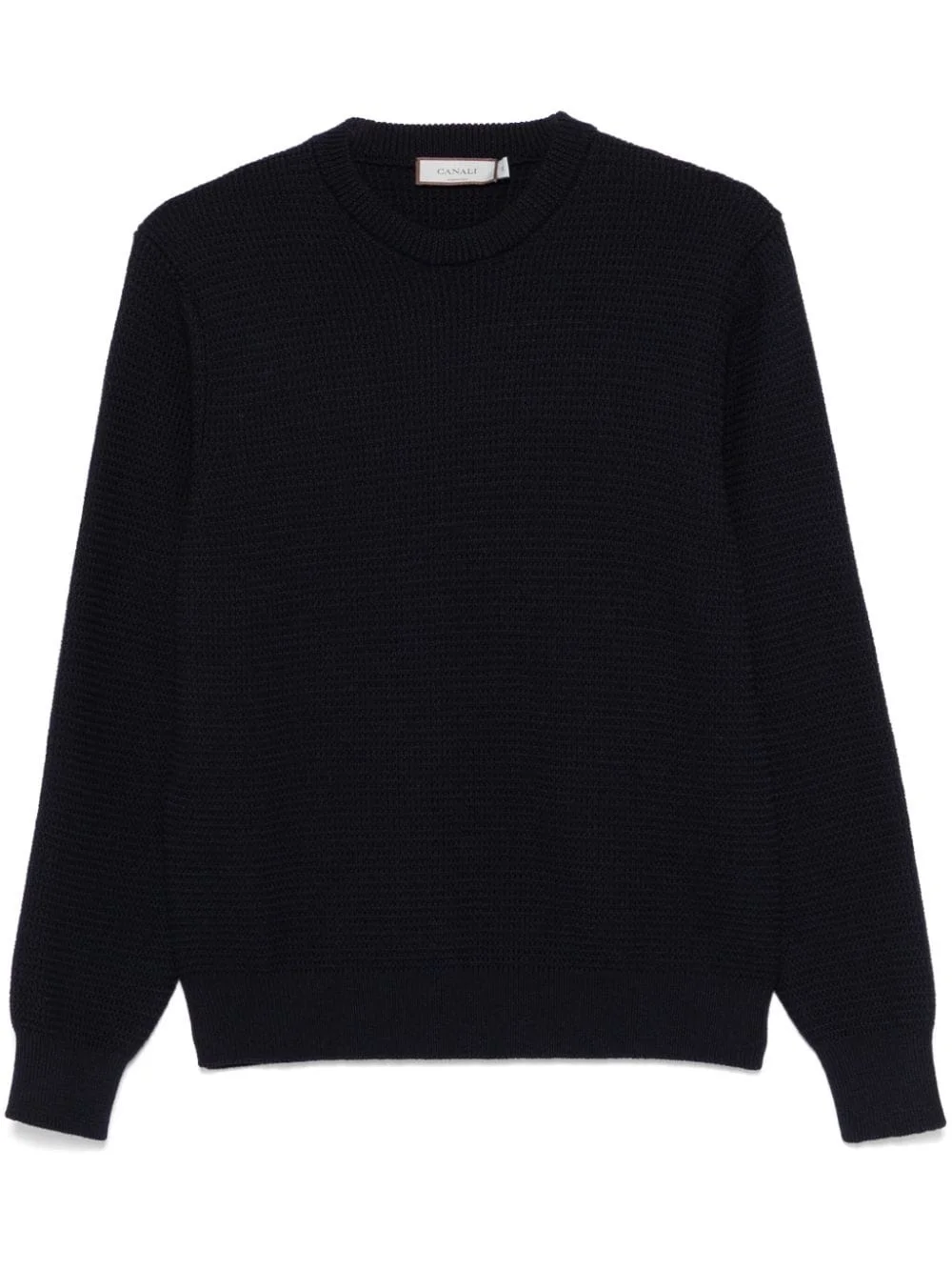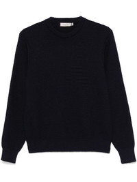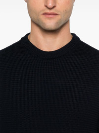 waffle-knit sweater Highlights - Navy blue - Merino wool - Waffle knit - Ribbed knit - Crew neck - Long sleeves - Ribbed cuffs and hem Made in Italy Composition Merino 100% SIZE & FIT Model measurements Height 6 ft 2 in(1.87 m) Bust/Chest 37.79 in(96 cm) Hips 37.79 in(96 cm) Waist 30.31 in(77 cm) FittingInformation Designed for a regular fit, offering a comfortable loose fit throughout the body The ribbed hem offers a close, comfortable fit Made with a midweight knit, this piece offers some stretch Washing instructions Hand Wash