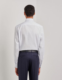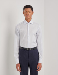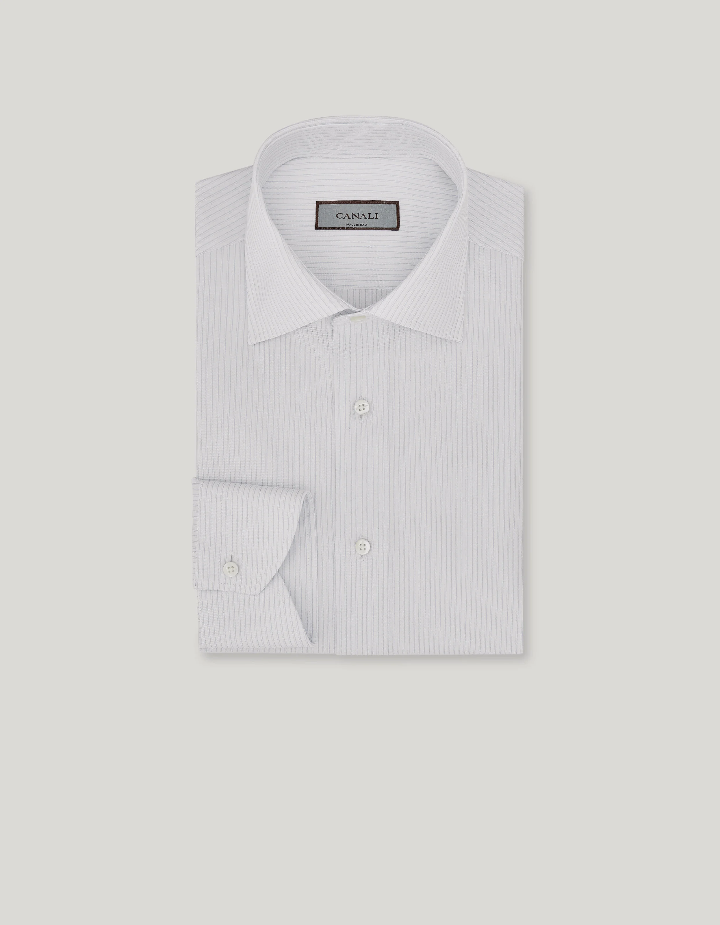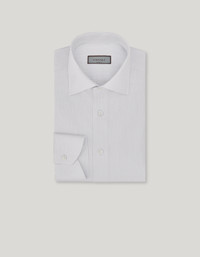 Elegance and functionality come together in this regular fit shirt made of Impeccabile cotton, a high-quality fabric whose ability to resist wrinkling gives a consistently flawless appearance. The timeless design with a semi-spread collar and rounded cuffs lends a sophistication that suits a variety of occasions, while the premium cotton ensures comfort and durability. This contemporary essential piece complements formal and casual outfits, offering a look that is curated in every detail. FABRICS AND CRAFTSMANSHIP - Formal shirt - Impeccabile - Semi-spread collar - Collar height 4.2 cm - Removable collar stiffeners - Plain back with no wrinkles - Plain front with no placket - Semi-rounded cuff - 100% Cotton - Made in Italy CARE Machine wash max 30° - delicate cycle Do not bleach Normal steam or dry iron on low (110°) Gentle dry clean with perchlorethylene Do not tumble dry FIT Regular fit The model is wearing a size 48 The model measures: Height: 186 cm (73.2 in) Chest: 81 cm (31.9 in) Waist: 70 cm (27.6 in) Hips: 82 cm (32.3 in)