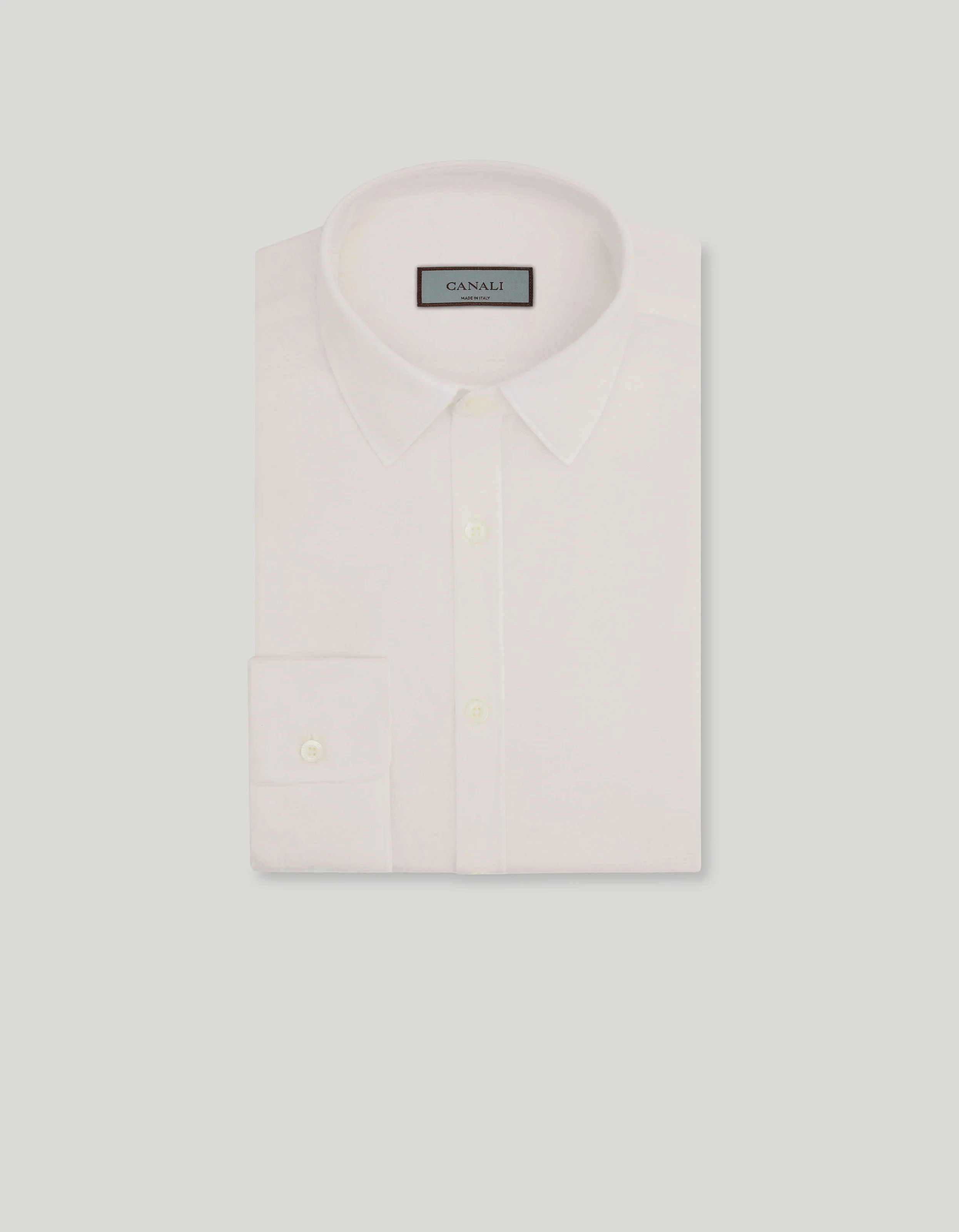 In a versatile colour scheme, this casual shirt is made from cotton and Lyocell jersey. Its high level of attention to detail, as seen in the front placket and narrow pointed collar, are accentuated by the clean and understated lines of the regular fit. For men who always love to dress in sophisticated style. FABRICS AND CRAFTSMANSHIP - Casual shirt - Narrow pointed collar - Collar height: 4 cm - Front with placket - 50% Cotton, 50% Lyocell - Jersey - Made in Italy CARE Machine wash max 30° - delicate cycle Do not bleach Normal steam or dry iron on low (110°) Do not dry clean Dry flat FIT Regular Fit The model is wearing a size 50 The model measures: Height: 185 cm (72.8 in) Chest: 100 cm (39.4 in) Waist: 79 cm (31.1 in) Hips: 95 cm (37.4 in)