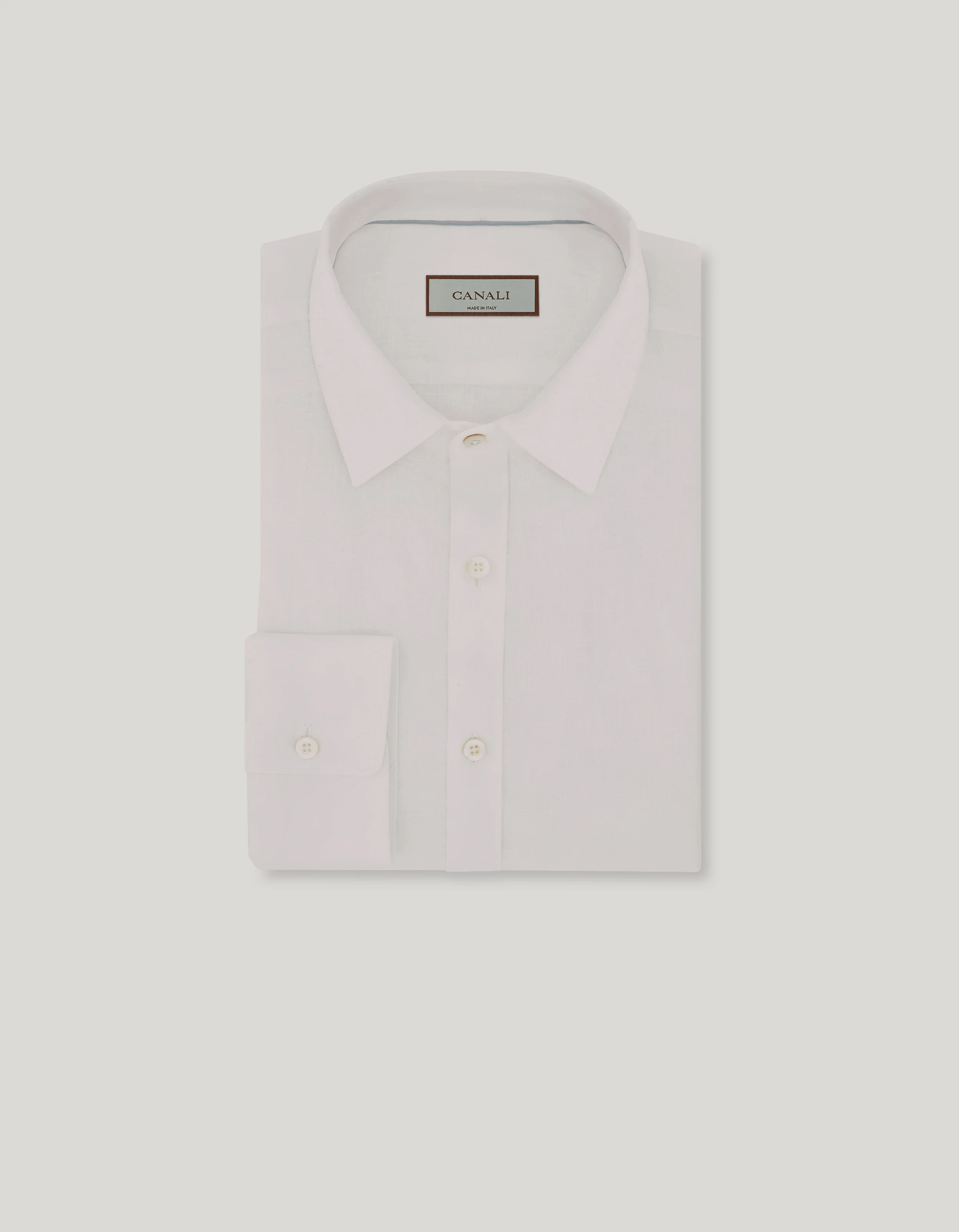 Pure linen casual shirt with narrow pointed collar and front placket, designed to provide comfort and breathability for any occasion. The regular fit and careful construction ensure a balanced and natural line, while the lightness of the fabric creates freshness and freedom of movement. An essential ally for the man who seeks casual elegance even in moments of relaxation. FABRICS AND CRAFTSMANSHIP - Casual shirt - Narrow pointed collar - Collar height 4 cm - Front with placket - 100% Linen - Made in Italy CARE Machine wash max 30° Do not bleach Normal steam or dry iron on low (110°) Do not dry clean Do not tumble dry FIT Regular fit The model is wearing a size 50 The model measures: Height: 185 cm (72.8 in) Chest: 100 cm (39.4 in) Waist: 79 cm (31.1 in) Hips: 95 cm (37.4 in)