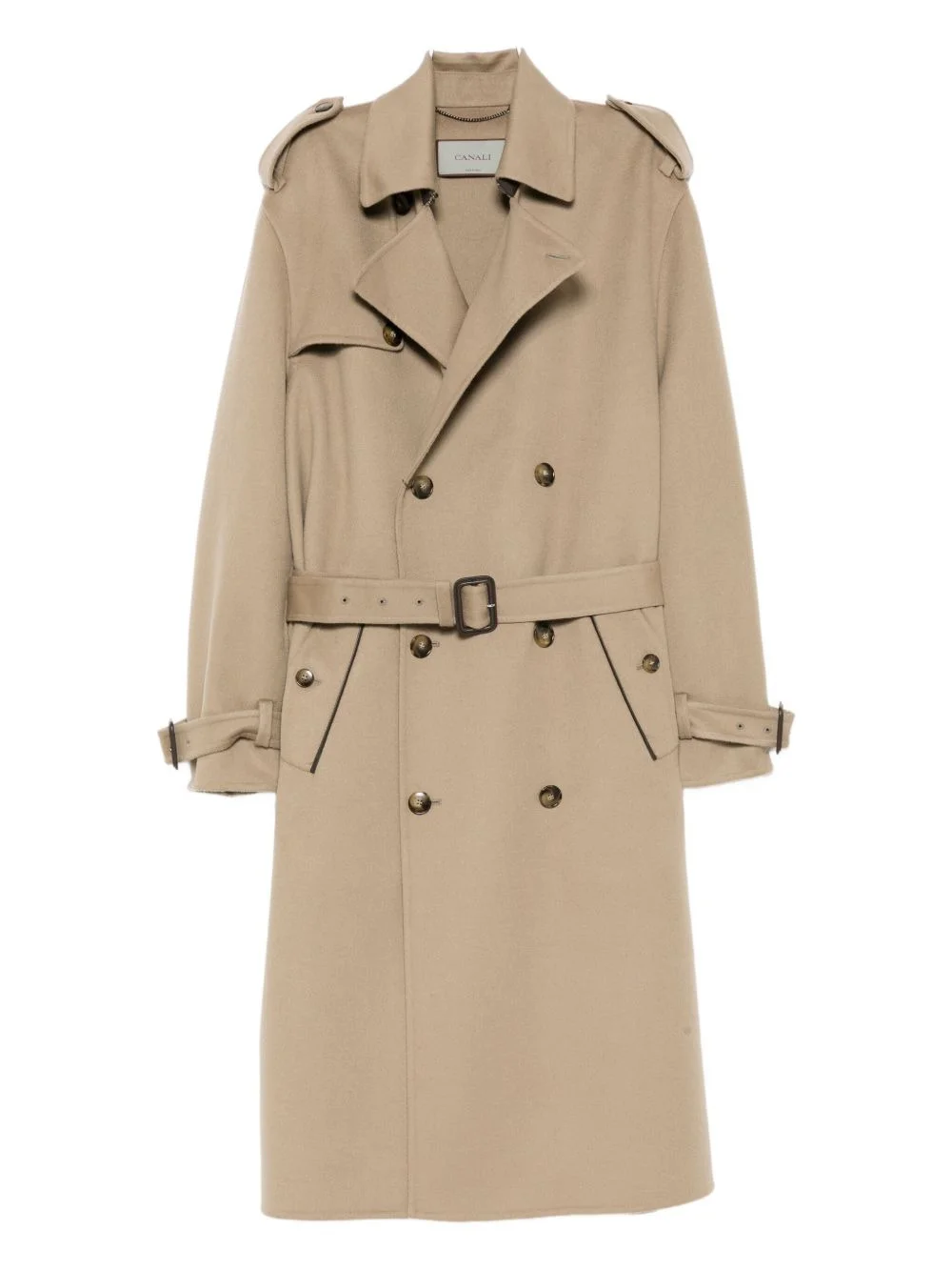 THIS LIGHT BROWN WOOL DOUBLE-BREASTED TRENCH COAT FEATURES A CLASSIC DOUBLE-BREASTED BUTTON FASTENING AND A DETACHABLE BELT FOR VERSATILE STYLING. TWO SIDE FLAP POCKETS ADD PRACTICALITY WHILE MAINTAINING A SLEEK SILHOUETTE. CRAFTED FOR BOTH FUNCTION AND ELEGANCE, IT OFFERS TIMELESS OUTERWEAR SOPHISTICATION.
