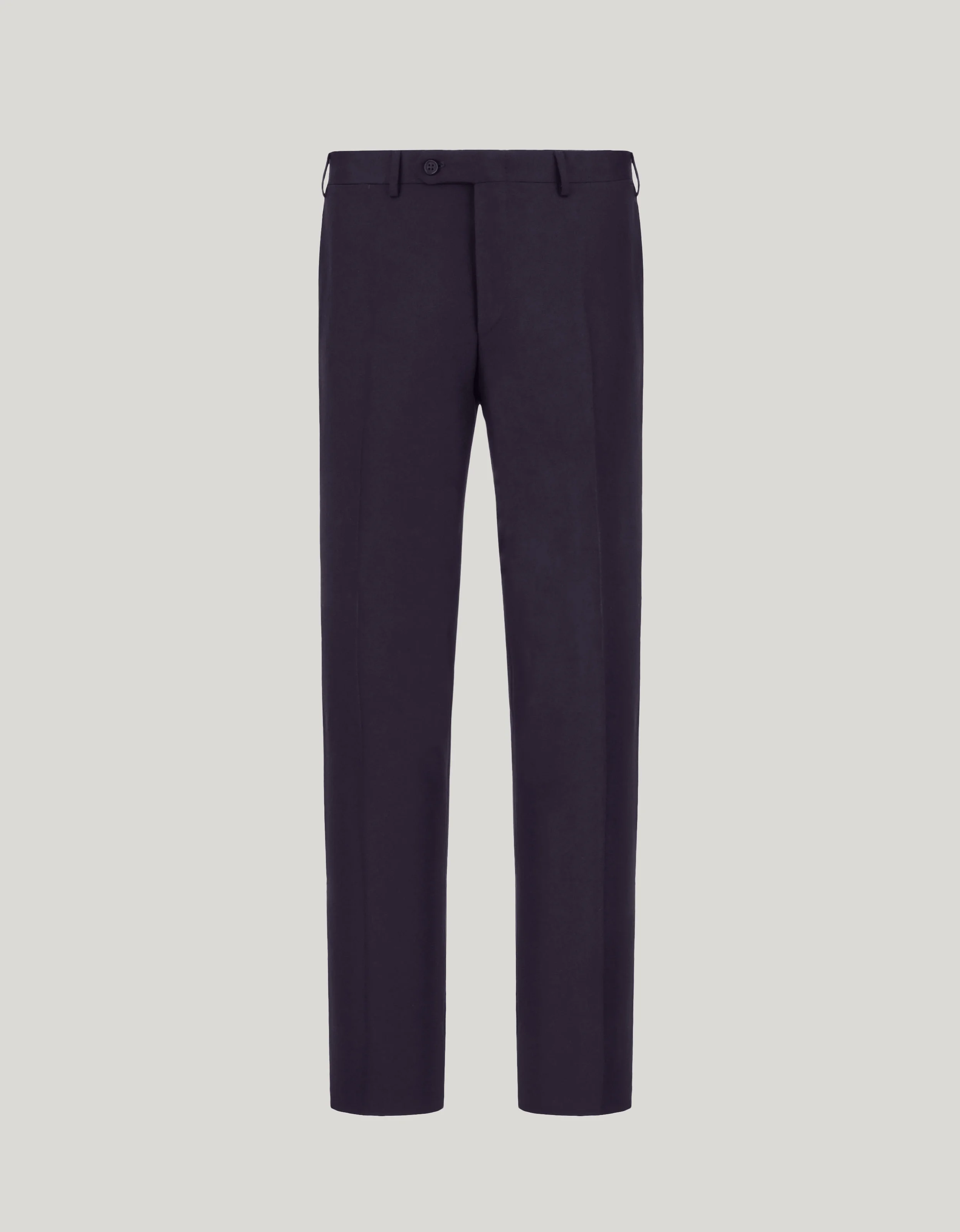 Pure wool flannel pants constructed with the comfortable lines of a regular fit. The refined colouring lends sophistication to an essential design with slanted pockets and without darts. Perfect for the man who wants to infuse every look with elegance. FABRICS AND CRAFTSMANSHIP - Flat-front pants - Slant pockets and two rear welt pockets - Hem: 19.5 cm - 100% wool - Made in Italy CARE Do not wash with water Do not bleach Normal steam or dry iron on low (150°) Dry clean with perchlorethylene Do not tumble dry FIT Regular Fit The model is wearing a size 48 The model measures: Height: 186 cm (73.2 in) Chest: 81 cm (31.9 in) Waist: 70 cm (27.6 in) Hips: 82 cm (32.3 in)