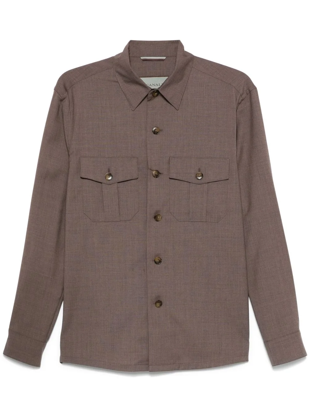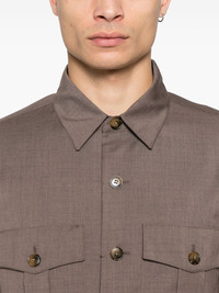 wool shirt Highlights - Walnut brown - Front button fastening - Two chest flap pockets - Buttoned-cuff sleeves - Pointed flat collar Made in Italy Composition Wool 100% SIZE & FIT Model measurements Height 6 ft 1 in(1.85 m) Bust/Chest 35.82 in(91 cm) Hips 37.79 in(96 cm) Waist 29.13 in(74 cm) FittingInformation Designed for a regular fit, allowing for a comfortably loose fit throughout the body Made from a midweight non-stretch fabric