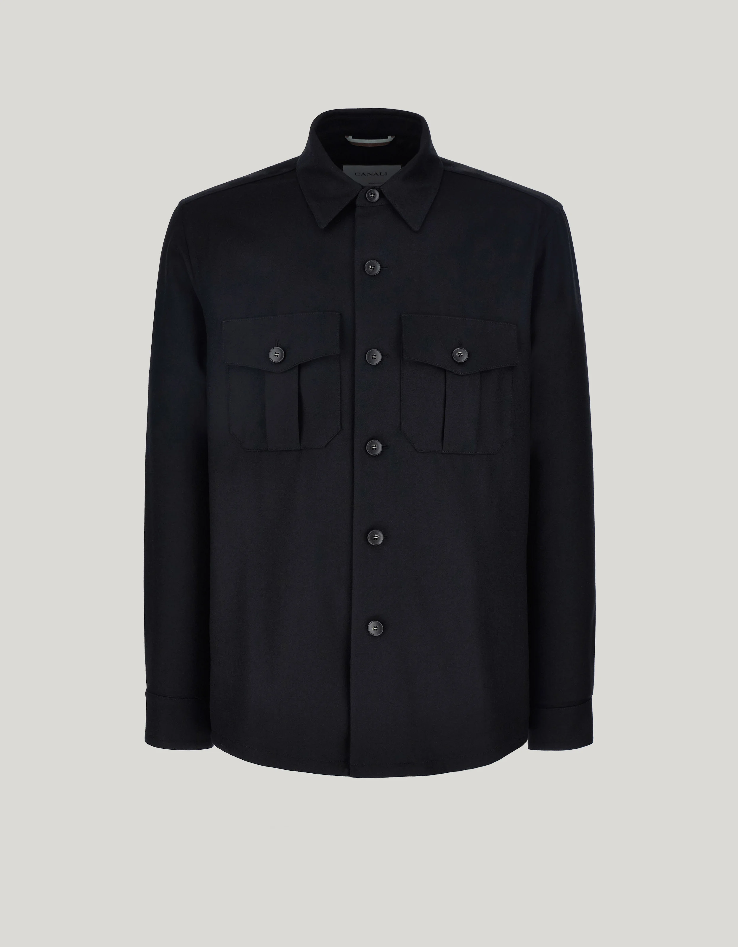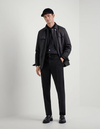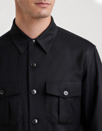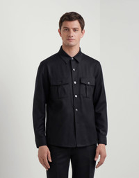 Ideal for the modern man, this black shirt jacket in pure Impeccabile wool - a high-quality fabric whose resistance to wrinkles ensures a consistently flawless appearance - combines Italian tailoring craftsmanship and dynamic comfort. With six buttons and a relaxed fit that enhances the silhouette, along with practical pockets. Its understated elegance and perfect versatility make it ideal for both formal occasions and more casual moments, always promising impeccable style and uncompromising quality. FABRICS AND CRAFTSMANSHIP - Shirt Jacket - Front with 6 buttons - Hand pockets along the side seam - Chest pockets with gusset, flap and button - Jacket length 75 cm in size 50 - 100% wool - Made in Italy CARE Do not wash with water Do not bleach Normal steam or dry iron on low (110°) Gentle dry clean with perchlorethylene Do not tumble dry FIT Relaxed fit Shirt jacket featuring a more relaxed fit around the shoulders, waist and length The model is wearing a size 48 The model measures: Height: 189 cm (74.4 in) Chest: 98 cm (38.6 in) Waist: 82 cm (32.3 in) Hips: 97 cm (38.2 in)