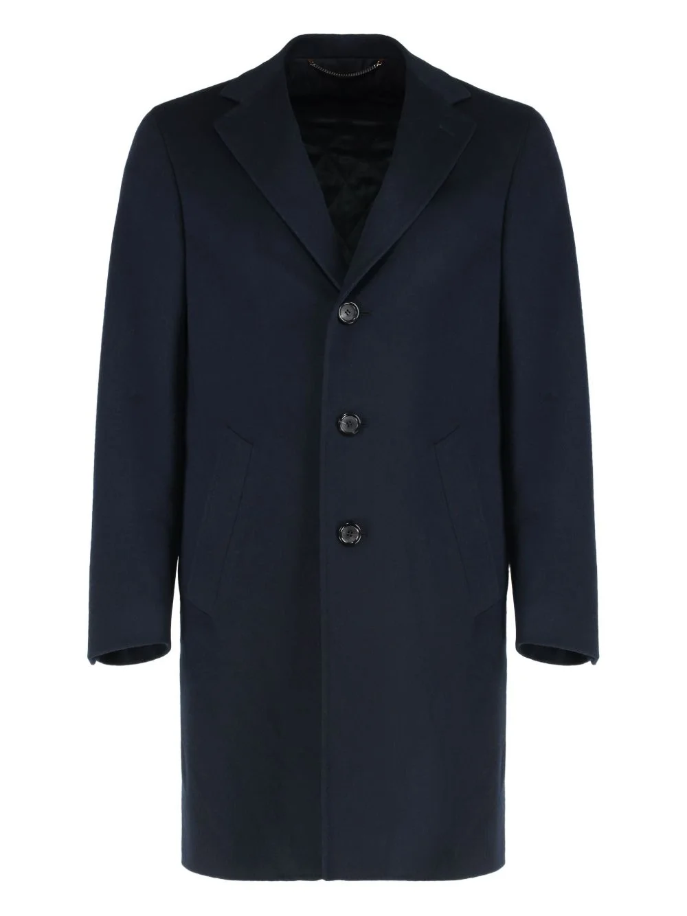 wool single-breasted coat Highlights - Navy blue - Wool - Front button fastening - Notched lapels - Long sleeves Made in Italy Composition Wool 100% Washing instructions Read Manufacturer Guidelines