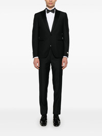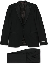 wool suit Highlights - Black - Front button fastening - Front button and zip fastening - Belt loops - English rear vents Made in Italy Composition Wool 100% SIZE & FIT Model measurements Height 6 ft 1 in(1.85 m) Bust/Chest 35.82 in(91 cm) Hips 37.79 in(96 cm) Waist 29.13 in(74 cm) FittingInformation Tailored for a slim fit, offering a comfortable fit that sits just away from the body The unfinished hems allow for the length to be altered Made from a midweight non-stretch fabric