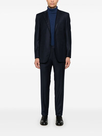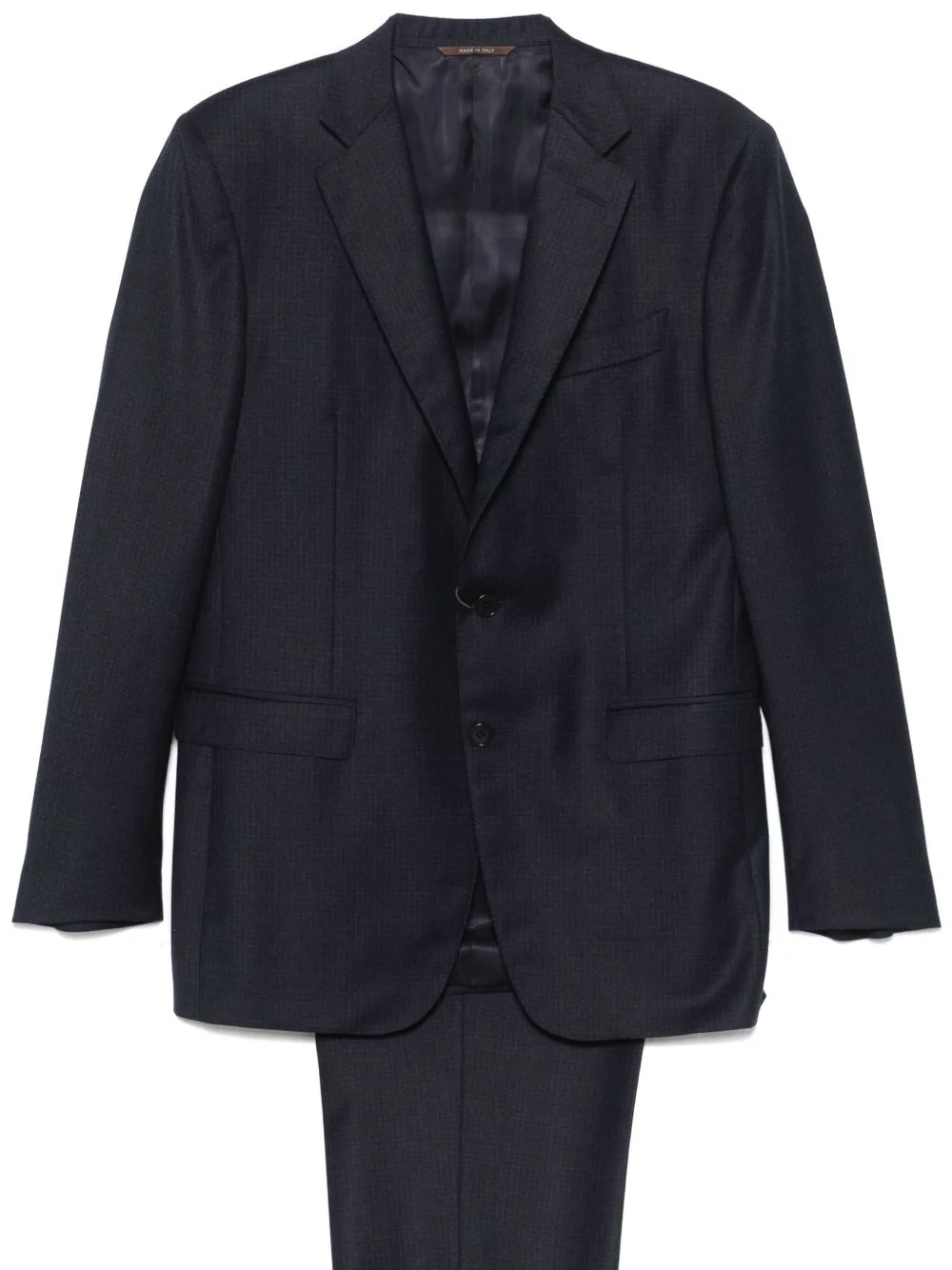wool suit Highlights - Navy blue - Wool - Textured finish Made in Italy Composition Lining: Cupro 100% Outer: Wool 100% SIZE & FIT Model measurements Height 6 ft 1 in(1.85 m) Bust/Chest 35.82 in(91 cm) Hips 37.79 in(96 cm) Waist 29.13 in(74 cm) FittingInformation Tailored for a slim fit, offering a comfortable fit that sits just away from the body The unfinished hems allow for the length to be altered Made from a midweight non-stretch fabric