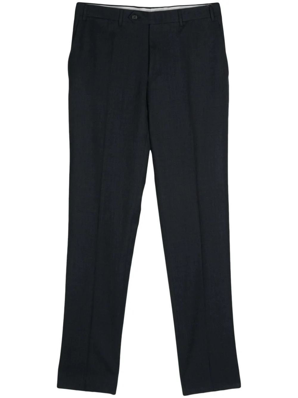 wool tailored trousers Highlights - Navy blue - Wool - Melange effect - Belt loops - Pressed crease - Two side inset pockets - Two rear button-fastening jetted pockets - Straight leg - Concealed fly and button fastening Made in Italy Composition Wool 100%