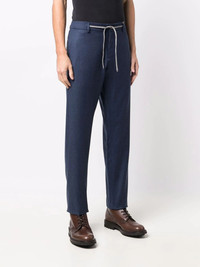 drawstring-waist chinos Highlights - Blue - Wool - Elasticated drawstring waistband - Straight leg - Slip pockets to the sides Made in Italy Composition Wool 100% SIZE & FIT Model measurements Height 6 ft 1 in(1.86 m) Bust/Chest 35.43 in(90 cm) Hips 35.43 in(90 cm) Waist 29.92 in(76 cm) FittingInformation This piece fits true to size. We recommend you get your regular size Cut for a slim fit Made with a mid-weight non-stretch fabric Washing instructions Dry Clean Only