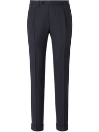 wool trousers Highlights - Navy blue - Wool - Concealed fly and button fastening - Belt loops - Two side slit pockets - Two rear button-fastening jetted pockets - Turn-up hem - Tailored cut Made in Italy Composition Wool 100% Washing instructions Read Manufacturer Guidelines