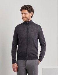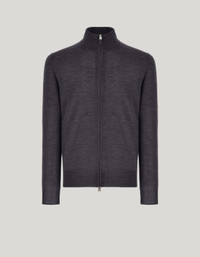 Full zipper cardigan made of pure extra-fine merino wool, designed for the person who wants to combine contemporary style and functionality. The special yarn, capable of enhancing fineness and movement, gives the piece an exceptionally soft feel and casual lightness. The plain knit finish make it a versatile ally for every season, ideal for facing travel and dynamic days with a natural and relaxed elegance. FABRICS AND CRAFTSMANSHIP - Full zipper long sleeved cardigan - Ribbed neckline, hem and cuffs - Plain knit - 14 gauge - 100% wool - Made in Italy CARE Hand wash max 40° Do not bleach Normal steam or dry iron on low (110°) Gentle dry clean with perchlorethylene Do not tumble dry FIT The model is wearing a size 50 The model measures: Height: 185 cm (72.8 in) Chest: 100 cm (39.4 in) Waist: 79 cm (31.1 in) Hips: 95 cm (37.4 in)