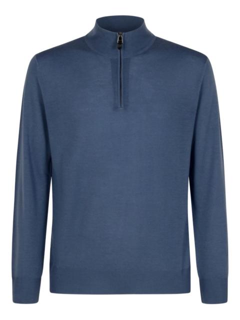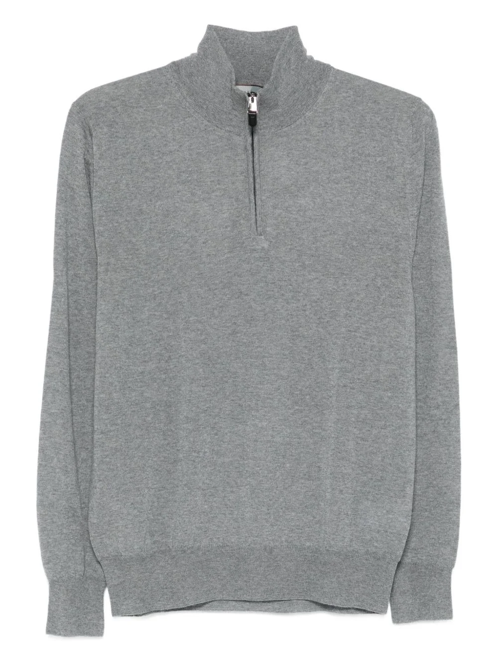 zip-neck wool sweater Highlights - Grey - Zip fastening - Long sleeves - Ribbed cuffs - Ribbed hem - Plain knit Made in Italy Composition Wool 100% SIZE & FIT Model measurements Height 6 ft 0 in(1.84 m) Bust/Chest 37.79 in(96 cm) Hips 37 in(94 cm) Waist 31.49 in(80 cm) Washing instructions Hand Wash