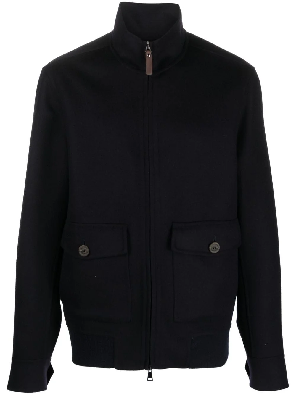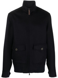 zip-up wool-cashmere jacket Highlights - Blue - Wool-cashmere blend - Funnel neck - Front two-way zip fastening - Two front flap pockets - Long sleeves - Buttoned cuffs - Elasticated hem Made in Italy Composition Wool 90%, Cashmere 10% SIZE & FIT Model measurements Height 6 ft 2 in(1.87 m) Bust/Chest 35.82 in(91 cm) Hips 35.43 in(90 cm) Waist 27.95 in(71 cm)