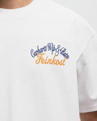 BSTN and Carhartt WIP introduce the Feinkost Pack, a capsule that blends distinct street flavors with a premium taste. In celebration of BSTN’s 10th anniversary, and inspired by the rich deli culture of the US – from legendary NYC bodegas to old-school European fine food establishments – BSTN and Carhartt WIP are raising a glass to all those who share their fondness for fine foods. Showcasing the shared passion for superior craftsmanship and quality garments, the collaborative capsule includes exclusive apparel and tableware and adds a distinct BSTN twist to staples from the Carhartt WIP portfolio. - Carhartt WIP & BSTN ‘Feinkost’ Tee - Ribbed crew neck collar - Short sleeves - Decorated with custom co-branded 'Feinkost' artwork Article number: I035997-02.XX-BSTN Gender: men Color: white Material: 100% Cotton