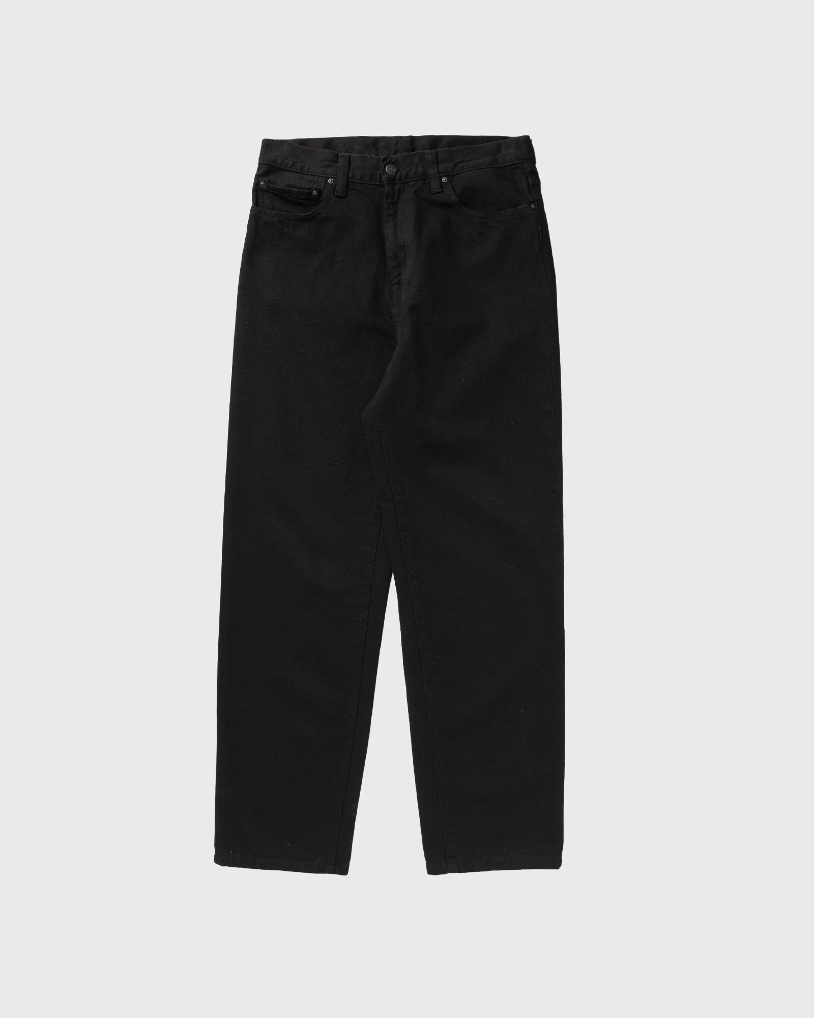 The Aaron Pant by Carhartt WIP has a 5-pocket design and is made from heavy cotton denim. It has a regular tapered fit. Bar tacks and rivets in high-wear areas provide additional durability. A square label made of synthetic leather completes the design. - 100% cotton (Camano denim) - Regular tapered fit, normal waist height - Saddle stitching - Bar tacks or rivets in high-wear areas - Zipper fly - Square label made of synthetic leather Article number: I036728-89.02 Gender: men Color: black Material: 100% Cotton