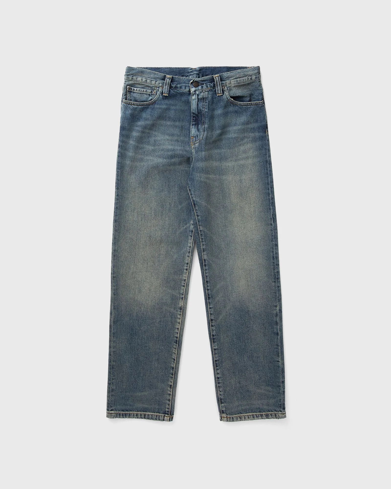 The Aaron Pant by Carhartt WIP has a 5-pocket design and is made from heavy cotton denim. It has a regular tapered fit. Bar tacks and rivets in high-wear areas provide additional durability. A square label made of synthetic leather completes the design. - 100% cotton (Camano denim) - Regular tapered fit, normal waist height - Saddle stitching - Bar tacks or rivets in high-wear areas - Zipper fly - Square label made of synthetic leather Article number: I036728-01.4Q Gender: men Color: Blue Material: 100% Cotton