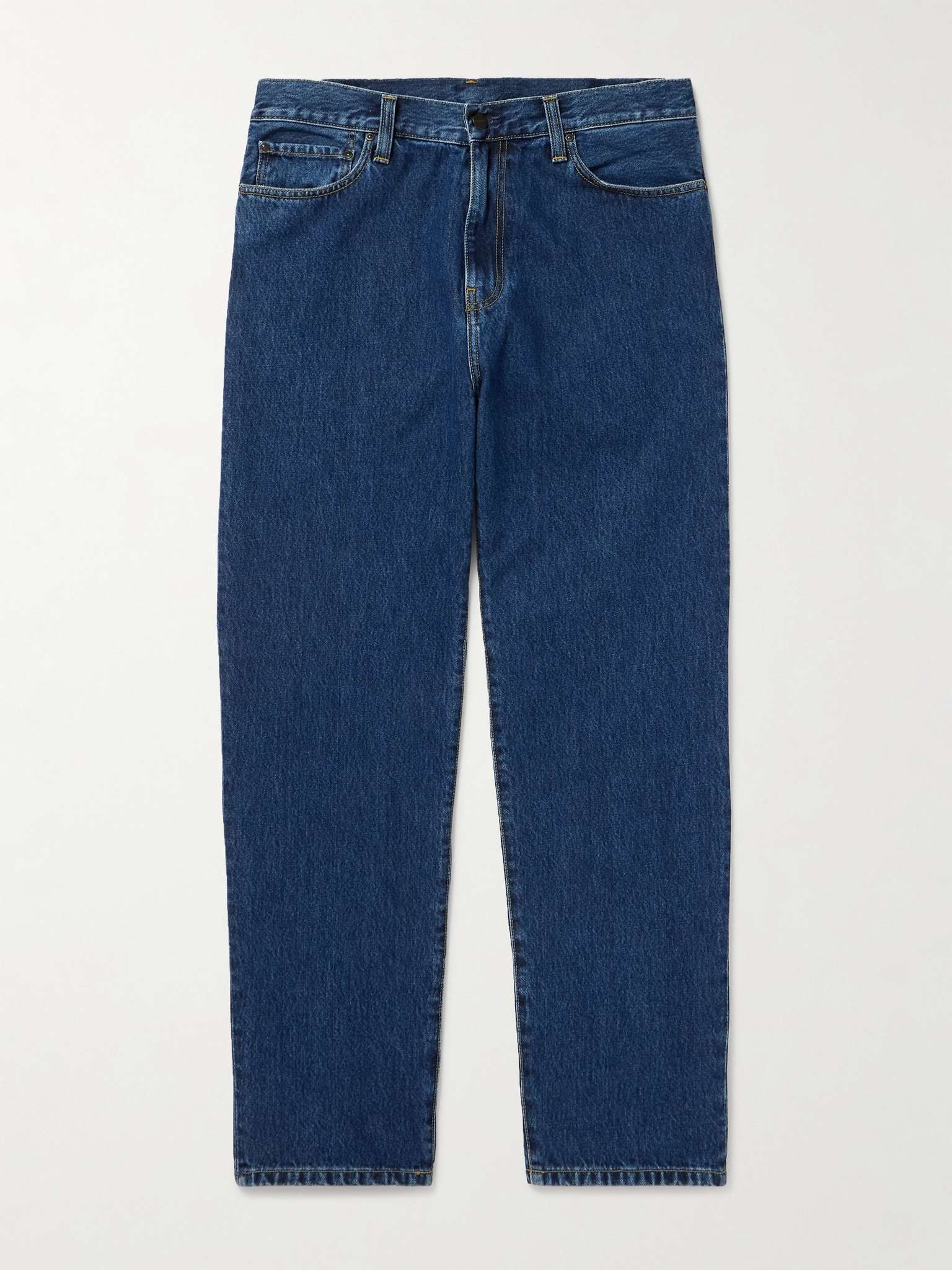 Workwear is the entire MO of Carhartt WIP, so it's no surprise it designs great jeans. This 'Aaron' style is made from stone-washed denim and cut in a slouchy, straight-leg shape. Size & Fit - Fits true to size. Take your normal size - Relaxed-straight leg, mid-rise style - Mid-weight, non-stretchy denim - Model is shown wearing a 30 - Model measures: waist size 30, height 6'0"/ 183cm Details & Care - Blue denim - Button and zip fastening - 100% cotton - Machine wash - Designer wash: Smith
