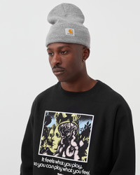 The iconic beanie from Carhartt is particularly soft and comfortable to wear. The beanie is made of robust acrylic fabric, which was processed in a stretchy rib knit. The design is rounded off by the characteristic branding on the front. A timeless Carhartt classic! Article number: I020175-V6.XX Gender: men,women Color: Grey Heather Material: 100% Acrylic