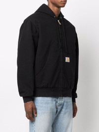 Active organic cotton hoodie from CARHARTT WIP featuring black, organic cotton, drawstring hood, front zip fastening, long sleeves, two front patch pockets and ribbed detailing. Conscious: This item is made from at least 50% organic materials. Size & Fit Model Measurements: Bust: 0cm Height: 0cm Hips: 0cm Waist: 0cm Fabric and Care Designer Style ID: I027360BLK Designer Colour: BLACK Composition: Cotton 100%