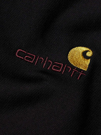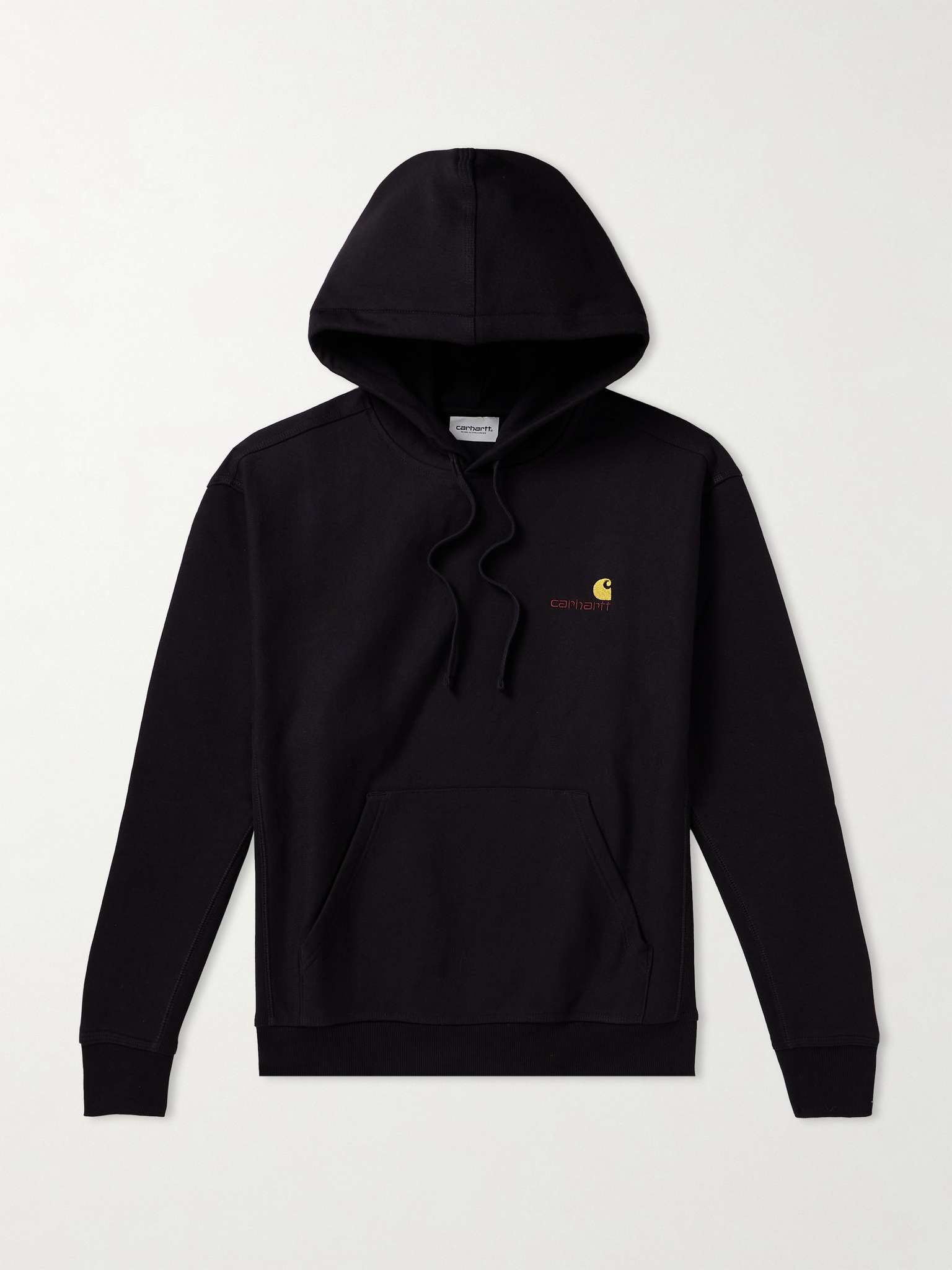 Carhartt WIP really excels when it comes to the basics. This 'American Script' hoodie is cut for a relaxed fit from cotton-blend jersey and embroidered with the logo at the chest. Size & Fit - Fits true to size. Take your normal size - Take the next size up if you wish to achieve a looser fit - Cut for a boxy fit - Mid-weight, slightly stretchy fabric - S/M/L sizing Details & Care - Black cotton-blend jersey - 80% cotton, 20% polyester - Machine wash