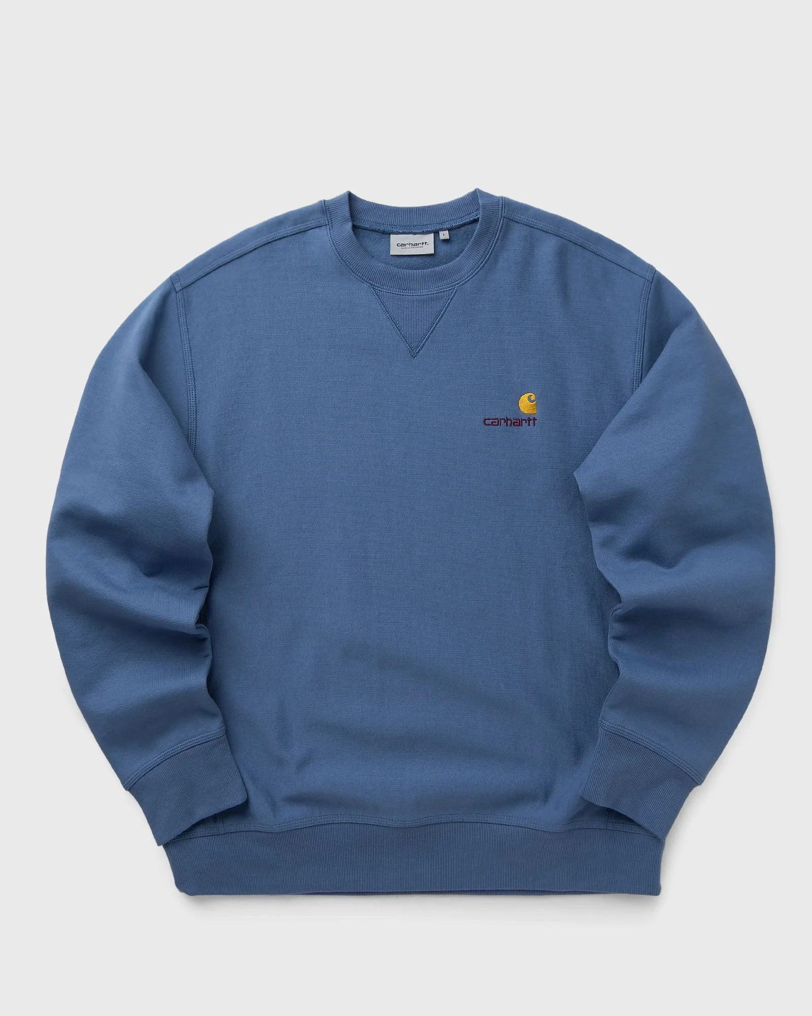 Made from a heavyweight, cotton-poly jersey fabric, the American Script Sweatshirt by Carhartt WIP has been brushed to give it a fleece-like backing. The sweater is detailed with a crewneck collar, as well as a ribbed hem, cuffs, and side panels. An American Script embroidery decorates the chest. - Crewneck - Ribbed hem and cuffs - Logo embroidery Article Number: I025475-1YI.XX Gender: Men Color: SORRENT Material: 80% Cotton, 20% Polyester