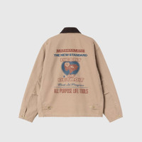 - I035553 2N260 - Dusty H Brown/Tobacco(Heavy Stone Wash) - 100% Cotton - Dearborn canvas - Unlined - Front zipper closure with snap button placket - Two front patch pockets - Printed graphics on the front and back - Adjustable button cuffs - Triple stitch detailing - Corduroy collar - Square label - Original loose fit