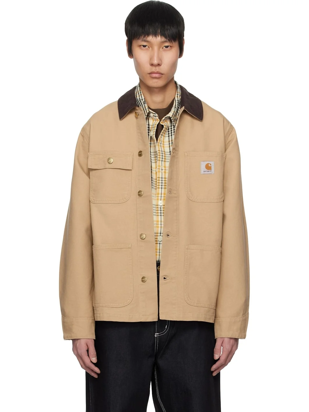 Lightweight 12 oz organic cotton Dearborn canvas jacket. · Corduroy spread collar · Button closure · Logo patch at chest · Flap pocket and patch pockets · Adjustable button fastening at cuffs · Central seam at back · Unlined · Logo-engraved gold-tone hardware Supplier color: Dusty Hamilton brown/Tobacco 100% organic cotton. Made in Tunisia 251111M180018