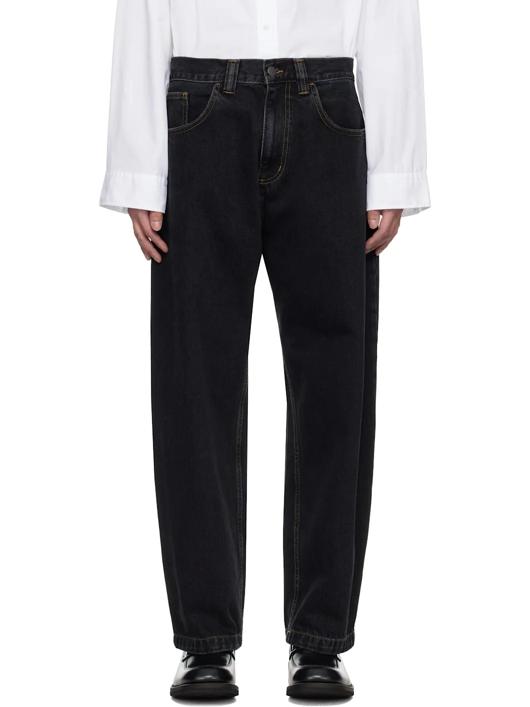 Stonewashed heavyweight non-stretch 13.5 oz denim jeans. Fading throughout. · Loose-fit and straight-leg · Belt loops · Five-pocket styling · Zip fly · Dropped inseam · Logo patch at back pocket · Logo-engraved gunmetal-tone hardware · Contrast stitching in tan Supplier color: Black (stone washed) Body: 100% cotton. Lining: 65% polyester, 35% cotton. Made in Tunisia 251111M186004