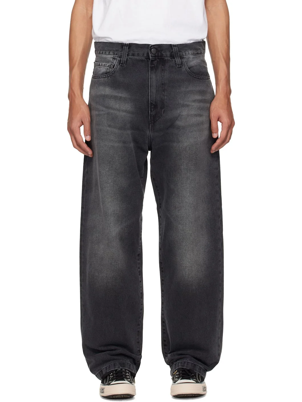 Non-stretch denim jeans. · Fading and whiskering throughout · Loose-fit and tapered · Belt loops · Five-pocket styling · Zip fly · Logo patch at back pocket Supplier color: Black Body: 100% cotton. Trim: 65% polyester, 35% cotton. Made in Tunisia 261111M186046