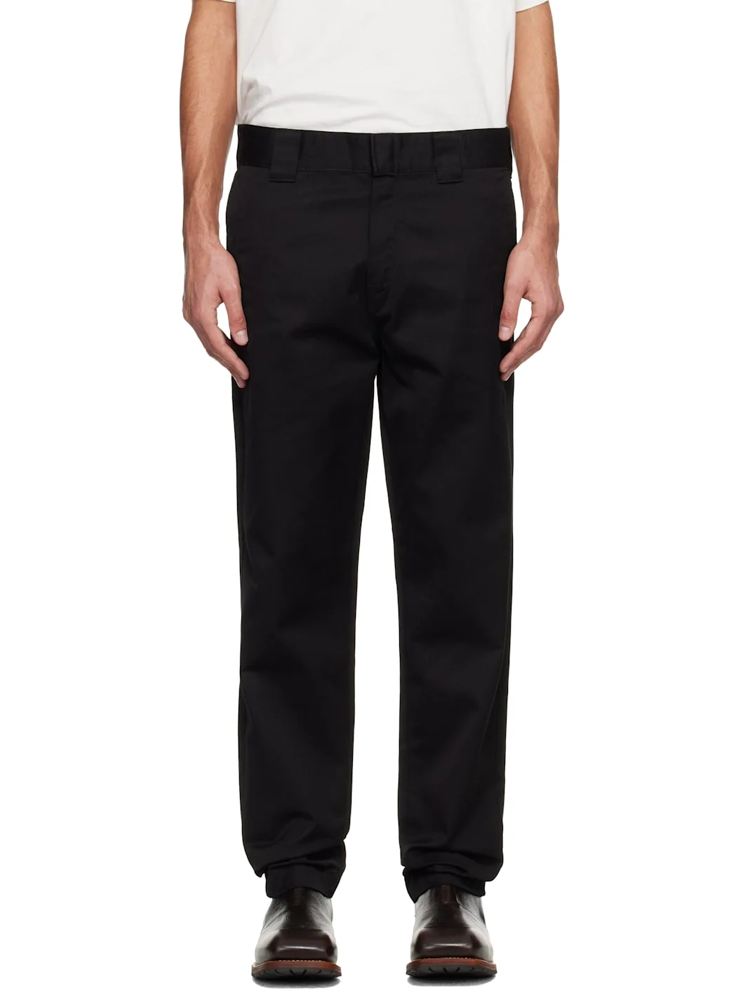 Cotton-blend twill trousers. · Tapered leg · Belt loops · Four-pocket styling · Zip fly · Logo patch at back waist Supplier color: Black Body: 65% polyester, 35% cotton. Pocket lining: 65% polyester, 35% cotton. Made in Pakistan 261111M191006