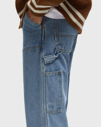 The loose and straight-cut Double Knee Pant by Carhartt WIP is made from Smith denim, a heavy cotton fabric. Reinforced, double-layered knee sections, bar seams, rivet details, tool pockets and a hammer loop are reminiscent of the pants' utility origins. - Relaxed straight fit - Regular waist - Triple seams - Tool pockets and hammer loop - Zip fly - Square label Article Number: I032699-01.12 Gender: Men Color: BLUE STONE BLEACHED Material: 100% Cotton