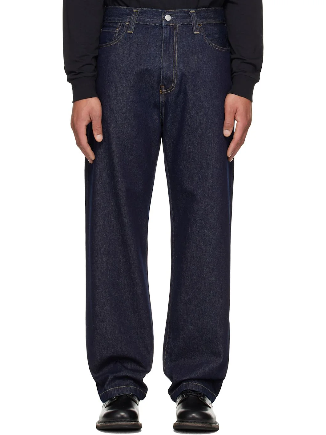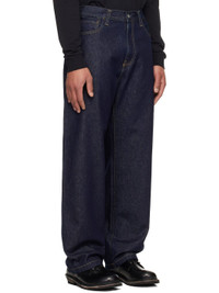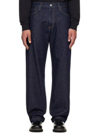 Heavyweight 12 oz non-stretch denim jeans. · Loose-fit, tapered · Mid-rise · Belt loops · Five-pocket styling · Zip fly · Logo patch at back pocket · Logo-engraved silver-tone hardware · Contrast stitching in tan Supplier color: Blue (rinsed) Body: 100% cotton. Pocket lining: 65% polyester, 35% cotton. Made in Tunisia 261111M186007